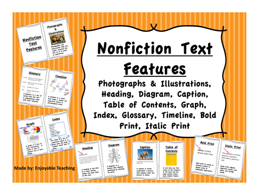 Nonfiction Text Features Vocabulary Word Work By Stephen Wolfe from ecdn.teacherspayteachers.com Listen and read activities tell their stories through words, images, and sound. They discuss why its elements make it nonfiction, its similarities with fiction, and what sets it apart from other nonfiction books. Nonfiction's specific factual assertions and descriptions may or may not be accurate, and can give either a true or a false account of the subject in question. The three little pigs, a biography about the life of president obama, a book about bears describing different types of bears, where they live, and what food they eat. Dec 23, 2019 · the emperor of all maladies won the 2011 pulitzer in general nonfiction (the jury called it "an elegant inquiry, at once clinical and personal, into the long history of an insidious disease that, despite treatment breakthroughs, still bedevils medical science."), the guardian first book award, and the inaugural pen/e. Diagrams • a diagram is a drawing that shows or explains something. The book does a nice job humanizing the members of the group, however chapters are split between the dyatlov group's trip, and the author's own trip back to russia to research it. Browse or search thousands of free teacher resources for all grade levels and subjects